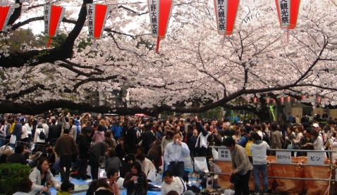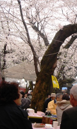 Once cherry blossoms bloomed, people happily go out to see them. Many people like to make a party near the cherry blossoms during the day and also in the evening. Families, friends, and co-workers get together with food and drink and enjoy cherry blossom veiwing parties.